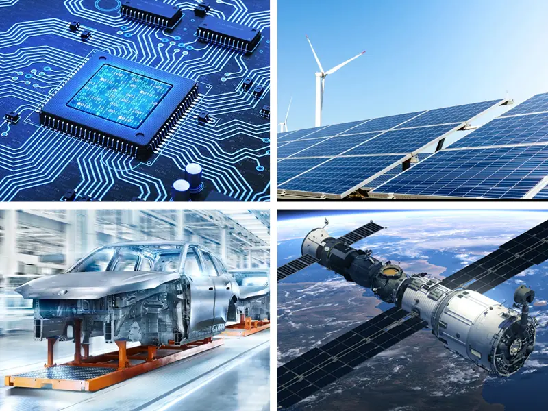 ● Automotive Fabrikatioun: Automobilelektronik, Heizkierpermaterialien